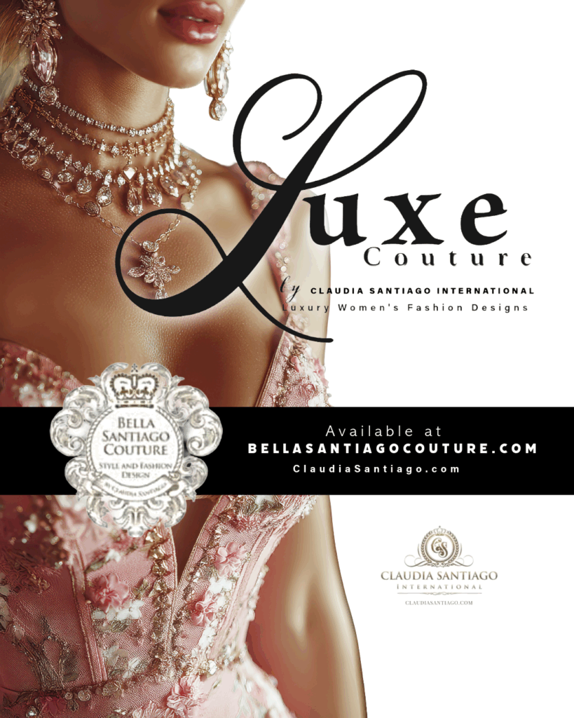 Coming soon to BELLA SANTIAGO COUTURE Boutique is Claudia Santiago’s Designer Luxury Women’s Collection! From creating crocheting her dolls dresses as a girl, learning tatting from her grandmother to make ornate collars for her simple outfits, to getting her first sewing machine at 13 years old and stepping into the fashion world with her own lines, producing fashion shows and then stepping onto global stages with her designs, Claudia Santiago has been creating beautiful things in various artistic ways.