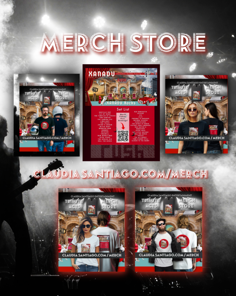 LAUNCH SPECIAL 25% OFF STOREWIDE SALE! (Valid through 02-17-2026 11:59pm EST) xanadu-rush-tribute XANADU – Canadian RUSH TributeClaudia Santiago Entertainment Visit XANADU Rush TributeTickets / Videos / Bookings / EPKs Shop Our Other Concert Merch Stores