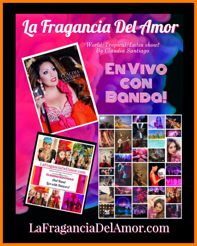 Who doesn’t love a great Latin party?! The salsa, merengue, bachata, tango and more! Let us whisk you away to the tropics for an exotic, fun getaway right in your own city. Dance the night away with Claudia Santiago’s LA FRAGRANCIA DEL AMOR Show (The Fragrance of Love Show).