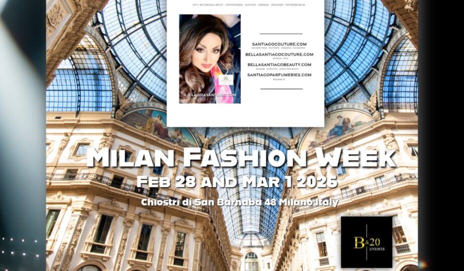 We are excited to announce that CLAUDIA SANTIAGO INTERNATIONAL will presented at MILAN FASHION WEEK and at PARIS FASHION WEEK in 2026 in collaboration with B&20 Events!